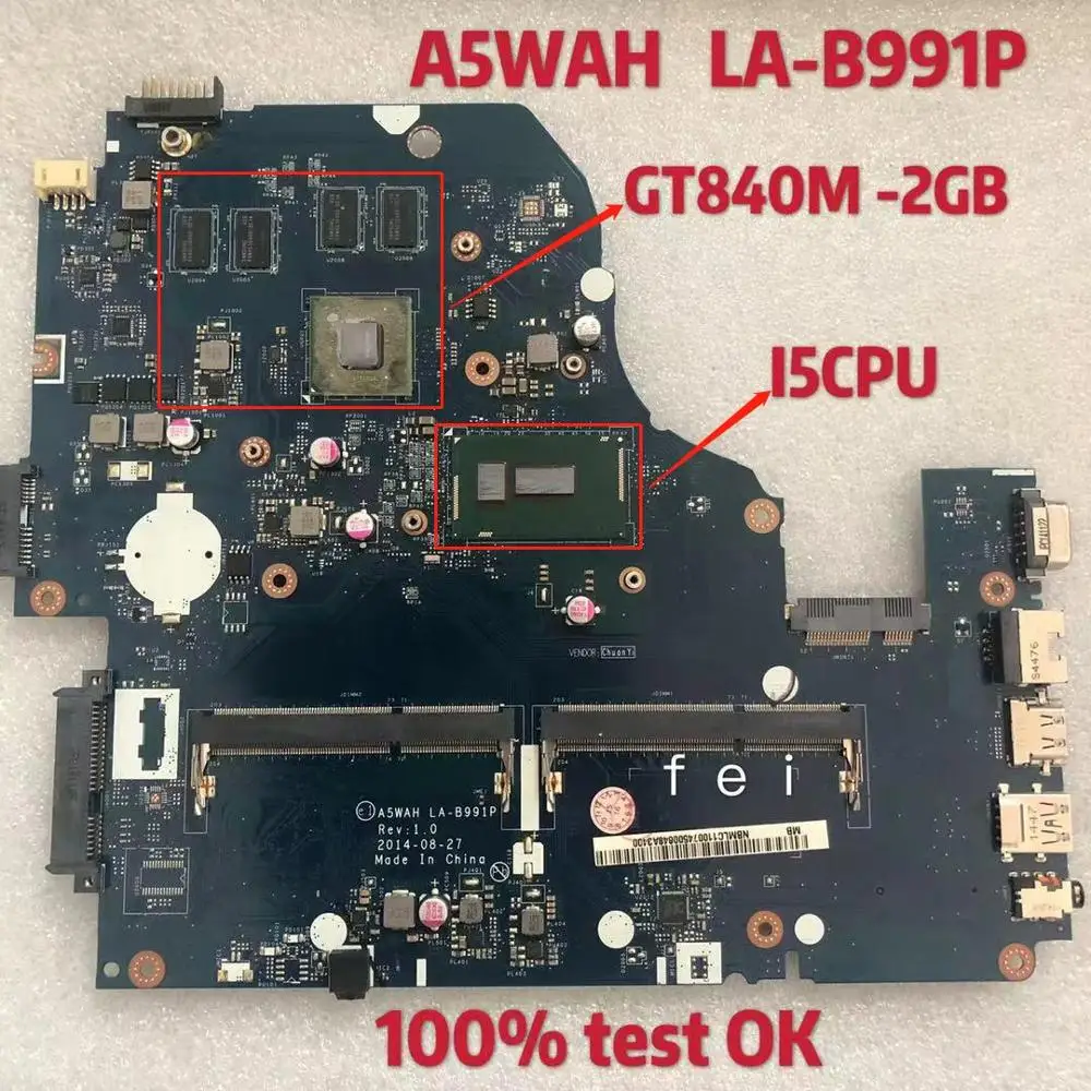 discounted LA-B991P Laptop Motherboard for Acer Aspire E5-571G E5-571 I5 CPU GT840M-2GB DDR3 100% teste ok